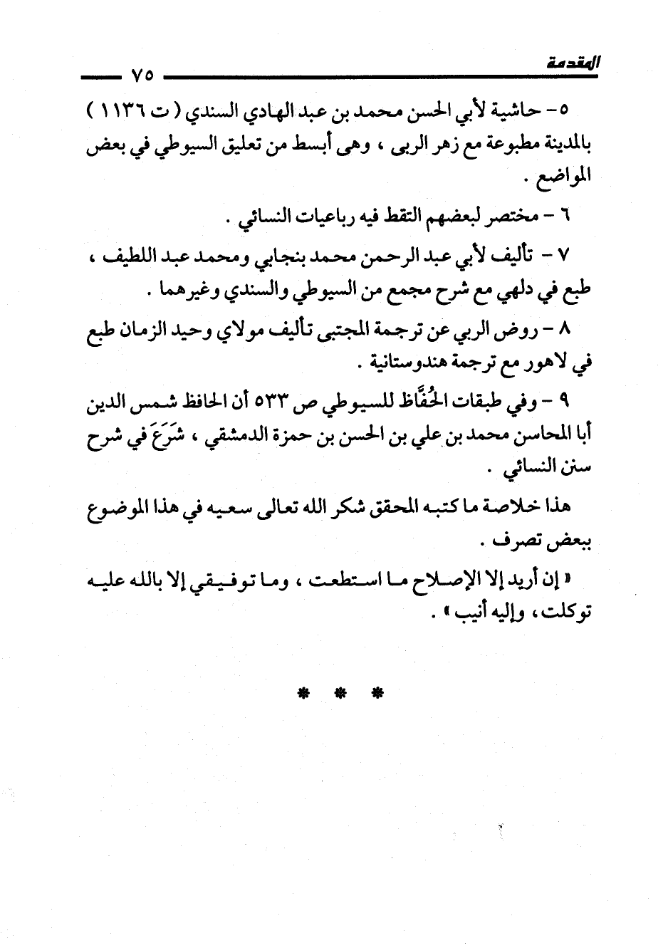 5 - حاشية لأبي الحسن محمَّد بن عبد اللهادي السندي (ت 1136) بالمدينة مطبوعة مع زهر الربى، وهي أبسط من تعليق السيوطي في بعض المواضع.