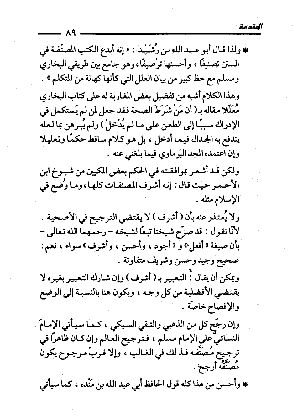 وإن رجّح كل من الذهبي والتقي السبكي، كما سيأتي الإمامَ النسائيَّ على الإمام مسلم، فترجيح العالم وإن كان ظاهرًا في ترجيح مُصَنَّفه فذلك في الغالب، وإلا فربّ مرجوح يكون مُصَنَّفُه أرجح.