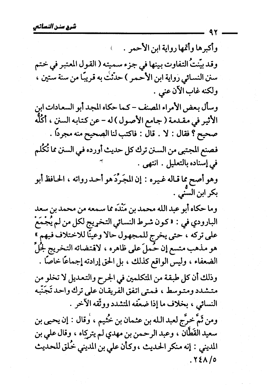 وقد بيّنتُ التفاوت بينها في جزء سميته (القول المعتبر في ختم سنن النسائي رواية ابن الأحمر) حدّثت به قريبًا من سنة ستين، ولكنه غاب الآن عني.