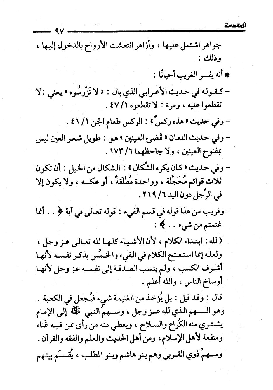 وهو السهم الذي لله عز وجل، وسهمُ النبي - صلى الله عليه وسلم - إلى الإمام يشتري منه الكُراع والسلاح، ويعطي منه من رأى ممن فيه غَناء ومنفعة لأهل الإسلام، ومن أهل الحديث والعلم والفقه والقرآن.