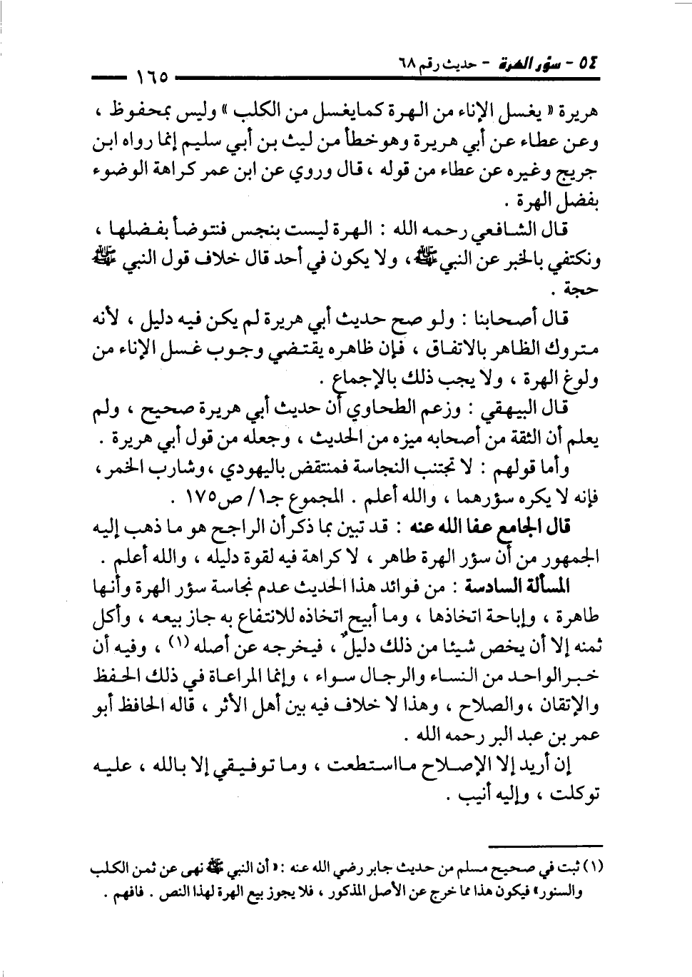 قال الجامع عفا الله عنه: قد تبين بما ذكرأن الراجح هو ما ذهب إليه الجمهور من أن سؤر الهرة طاهر، لا كراهة فيه لقوة دليله، والله أعلم.