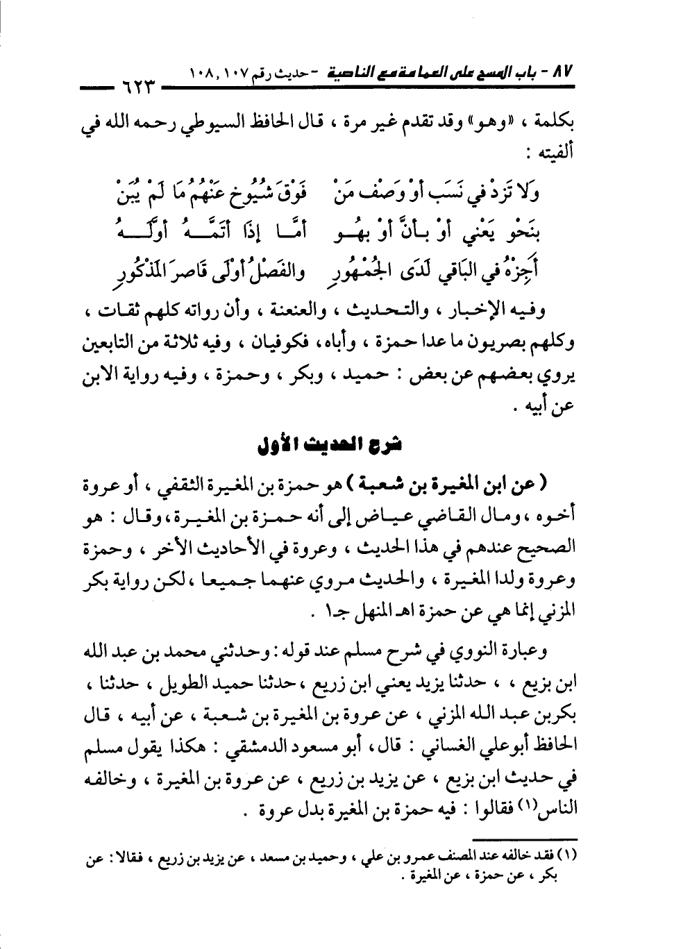 (¬1) فقد خالفه عند المصنف عمرو بن علي، وحميد بن مسعد، عن يزيد بن زريع، فقالا: عن بكر، عن حمزة، عن المغيرة.