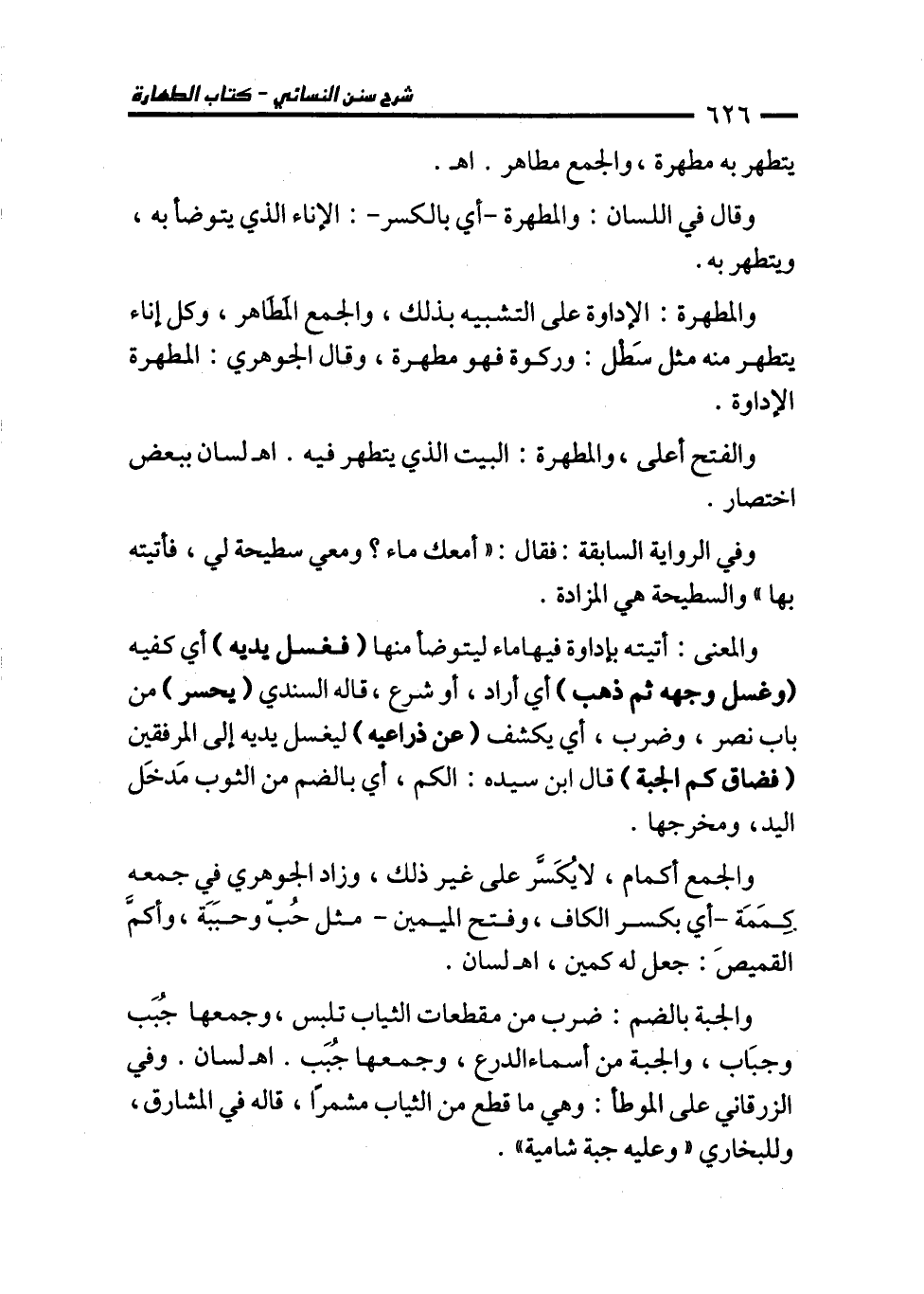 وقال في اللسان: والمطهرة -أي بالكسر-: الإناء الذي يتوضأ به، ويتطهر به.