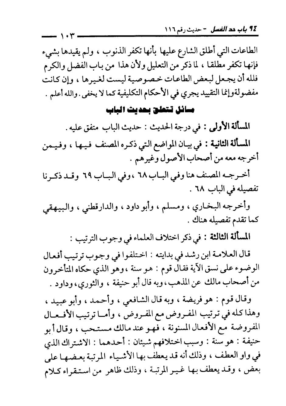 المسألة الثالثة: في ذكر اختلاف العلماء في وجوب الترتيب: