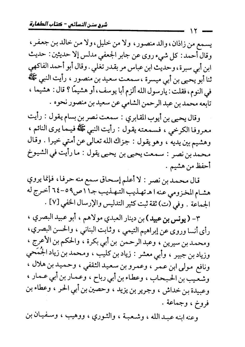 3 - (يونس بن عبيد) بن دينار العبدي مولاهم، أبو عبيد البصري، رأى أنسا وروى عن إبراهيم التيمي، وثابت البناني، والحسن البصري، ومحمد بن سيرين، وعبد الرحمن بن أبي بكرة، والحكم بن الأعرج، وزياد بن جبير، وأبي معشر: زياد بن كليب، ومحمد بن زياد الجُمَحي ونافع مولى ابن عمر، وعمرو بن سعيد الثقفي، وحميد بن هلال، وشعيب بن الحبحاب، وعطاء بن أبي رباح، وعمار بن أبي عمار، وعبيدة بن خداش، وجرير بن يزيد، وحصين بن أبي الحر، وعطاء بن فروخ، وجماعة.