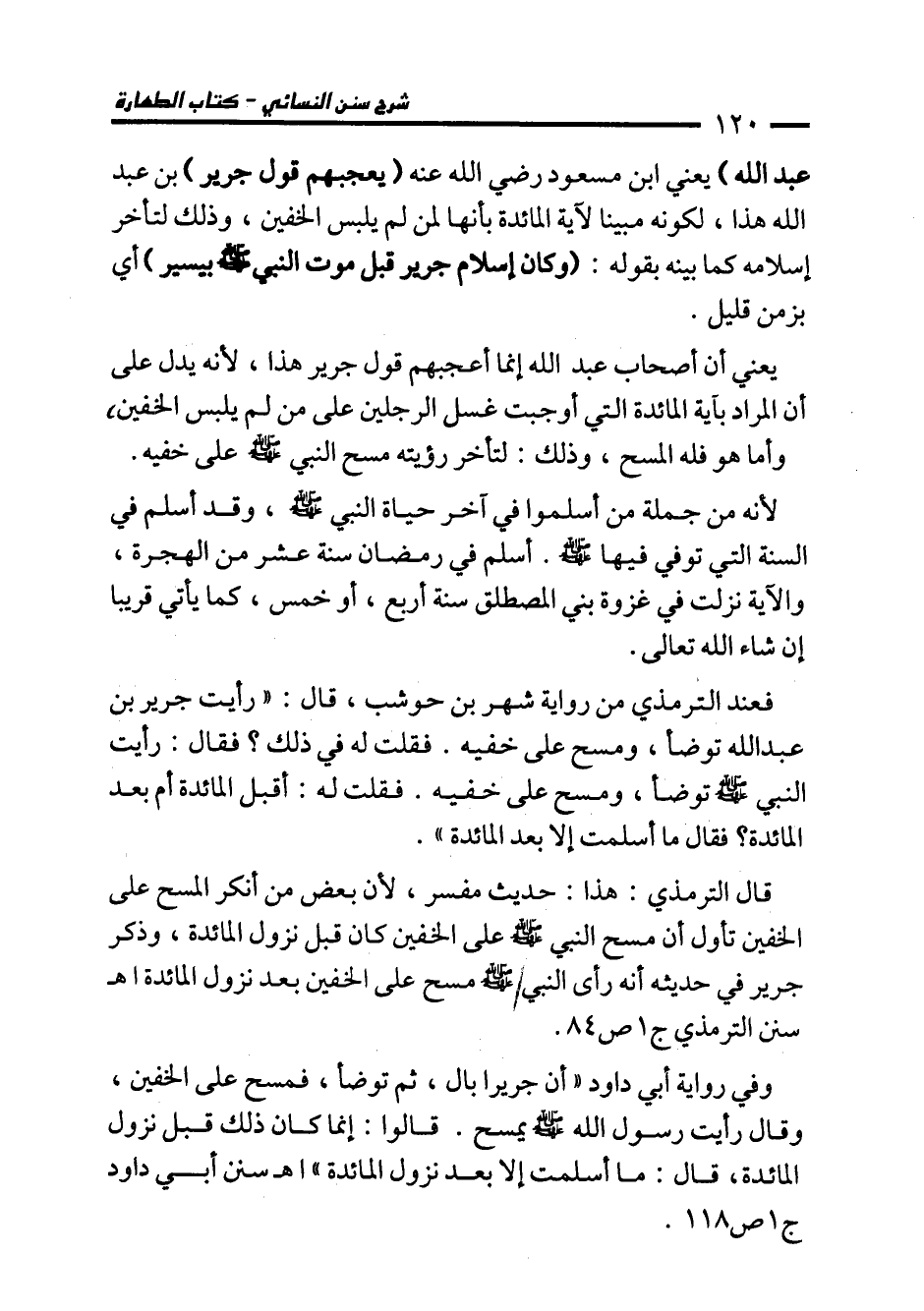 قال الترمذي: هذا: حديث مفسر؛ لأن بعض من أنكر المسح على الخفين تأول أن مسح النبي - صلى الله عليه وسلم - على الخفين كان قبل نزول المائدة، وذكر جرير في حديثه أنه رأى النبي - صلى الله عليه وسلم - مسح على الخفين بعد نزول المائدة اهـ سنن الترمذي ج 1 ص 84.