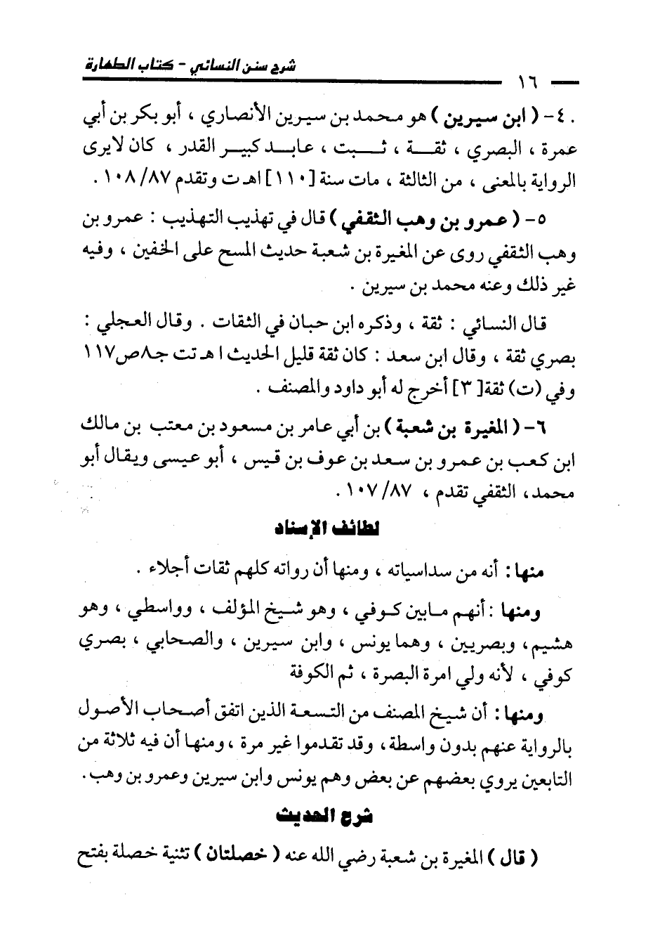 5 - (عمرو بن وهب الثقفي) قال في تهذيب التهذيب: عمرو بن وهب الثقفي روى عن المغيرة بن شعبة حديث المسح على الخفين، وفيه غير ذلك وعنه محمَّد بن سيرين.
