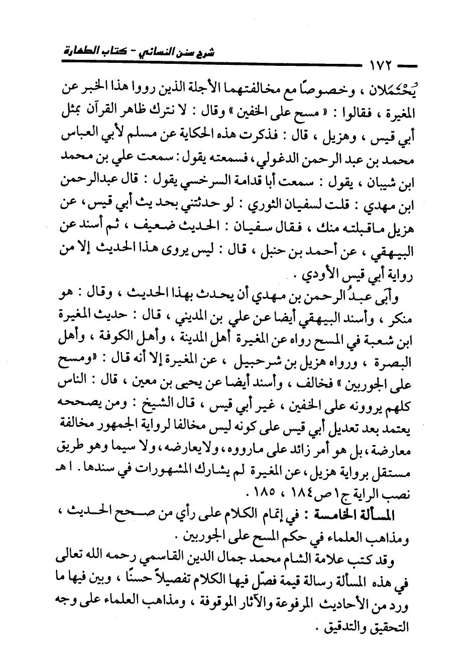 المسألة الخامسة: في إتمام الكلام على رأي من صحح الحديث، ومذاهب العلماء في حكم المسح على الجوربين.