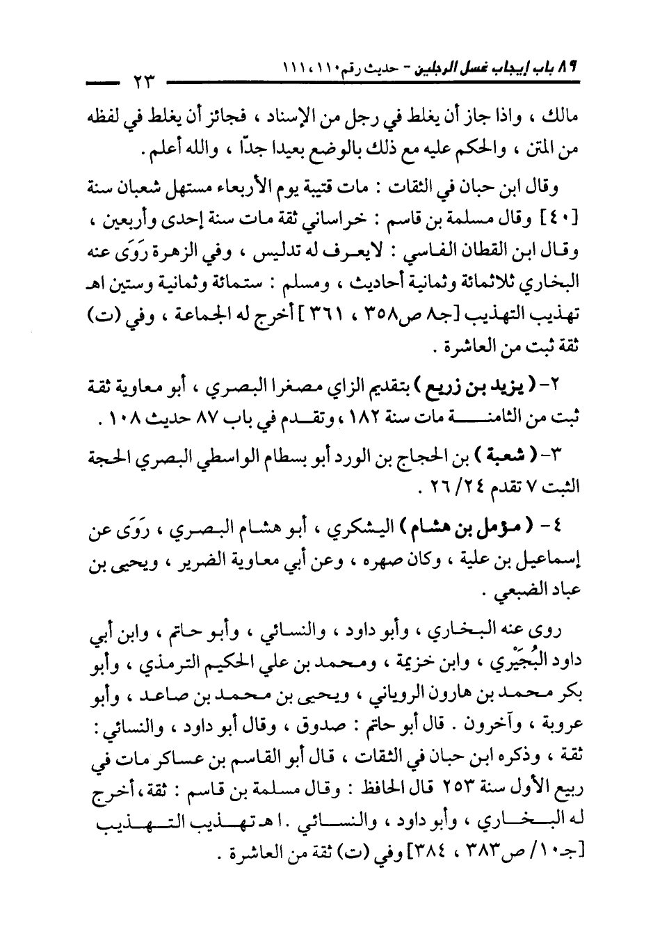 3 - (شعبة) بن الحجاج بن الورد أبو بسطام الواسطي البصري الحجة المثبت 7 تقدم 24/ 26.