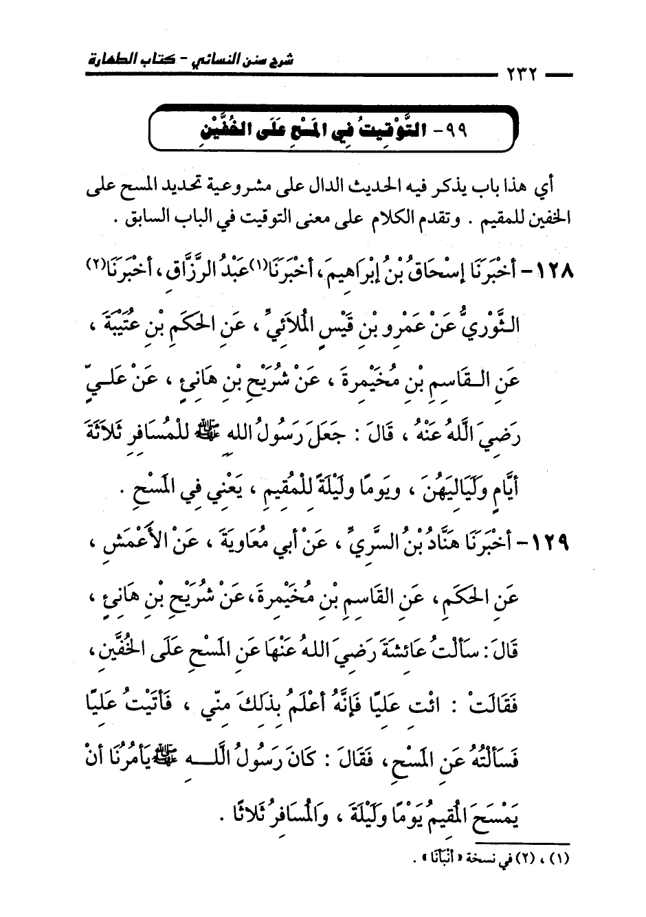 99 - التَّوْقيتُ فِي المَسْحِ عَلَى الخُفيَّيْنِ