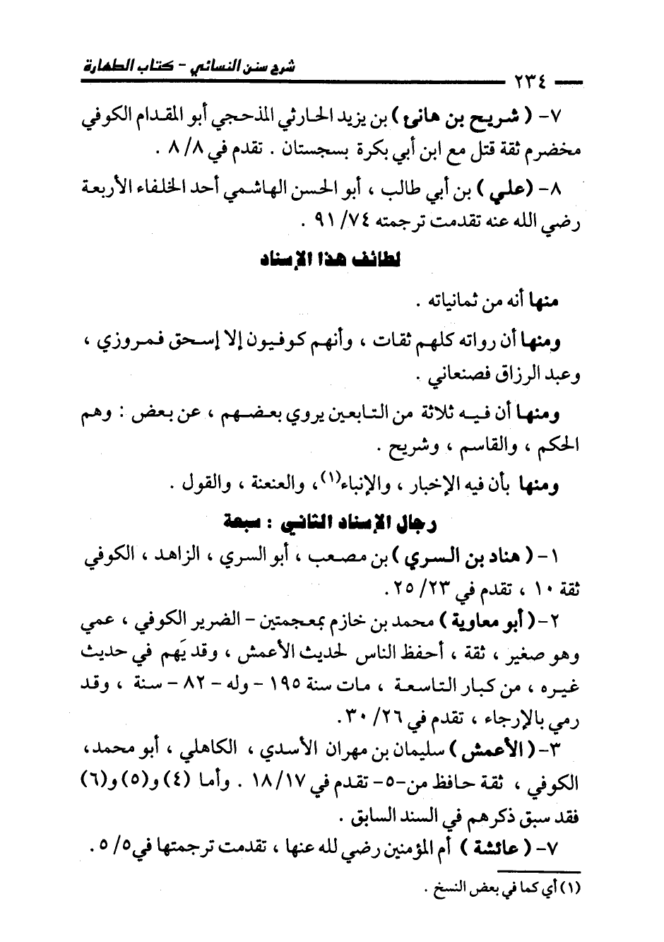 ومنها أن رواته كلهم ثقات، وأنهم كوفيون إلا إسحاق فمروزي، وعبد الرزاق فصنعاني.