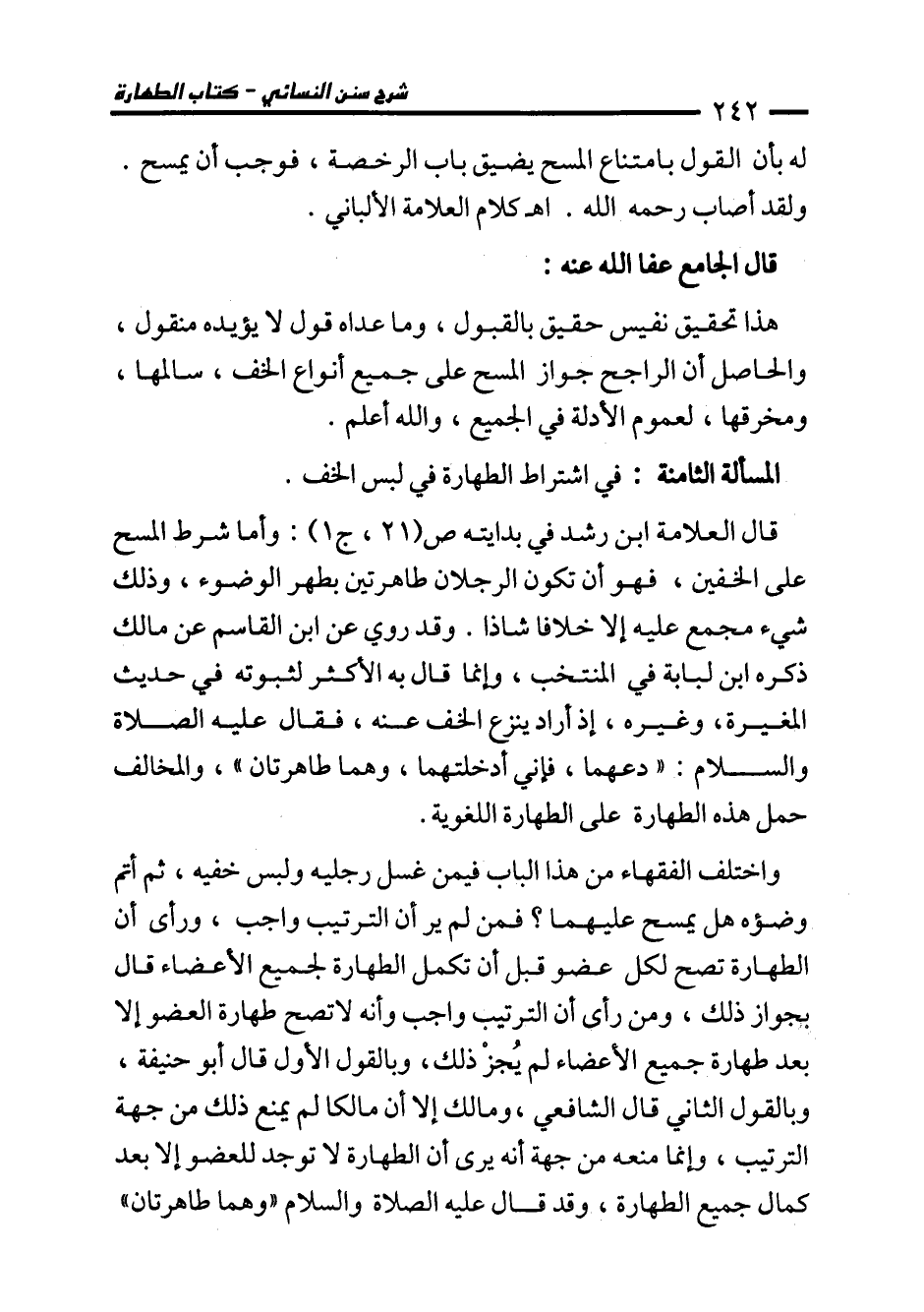 المسألة الثامنة: في اشتراط الطهارة في لبس الخف.