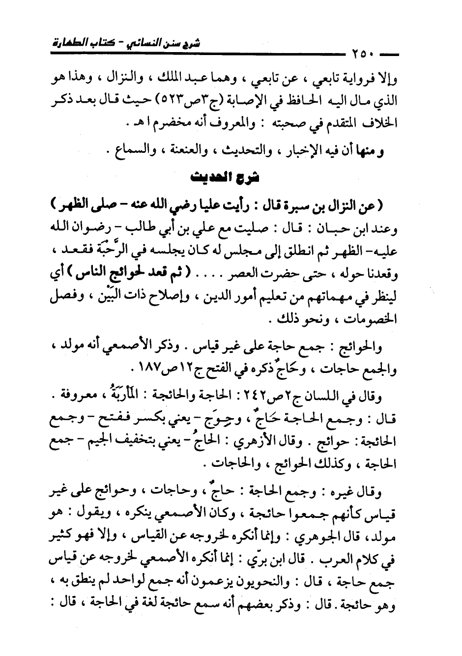 والحوائج: جمع حاجة على غير قياس. وذكر الأصمعي أنه مولد، والجمع حاجات، وحَاجٌ ذكره في الفتح ج 12 ص 187.