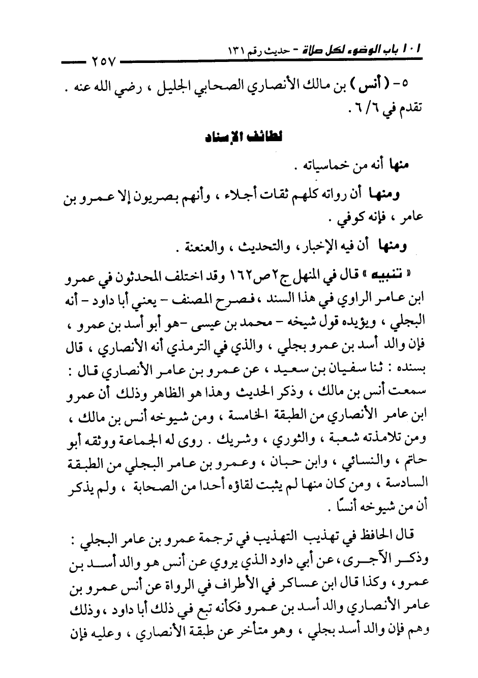 ومنها أن رواته كلهم ثقات أجلاء، وأنهم بصريون إلا عمرو بن عامر، فإنه كوفي.