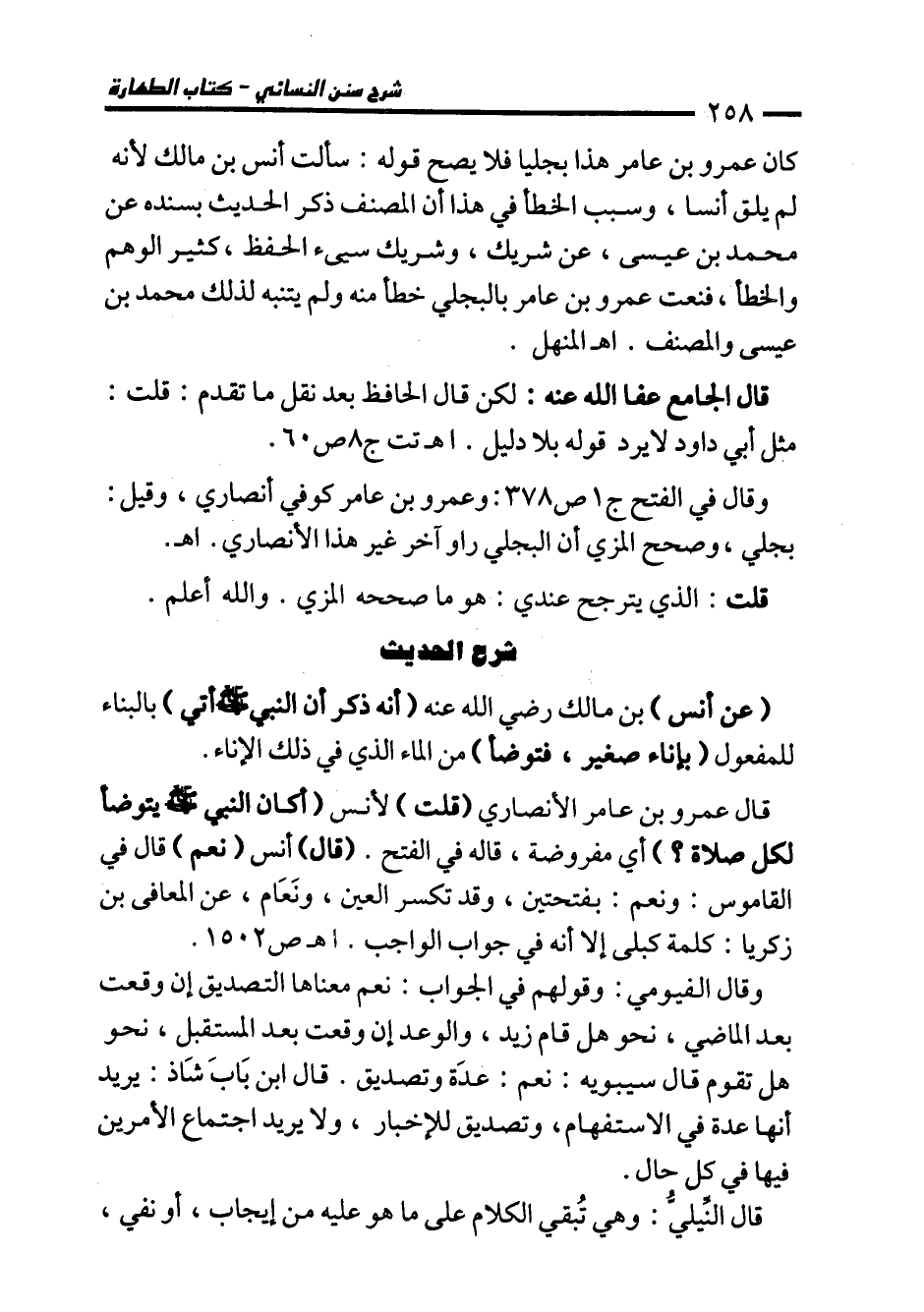 وقال في الفتح ج 1 ص 378: وعمرو بن عامر كوفي أنصاري، وقيل: بجلي، وصحح المزي أن البجلي راو آخر غير هذا الأنصاري. اهـ.