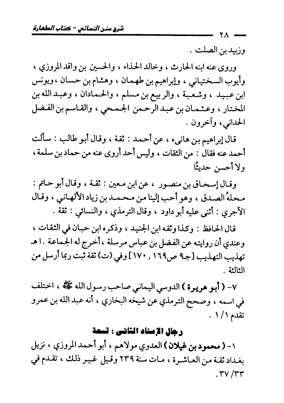 7 - (أبو هريرة) الدوسي اليماني صاحب رسول الله - صلى الله عليه وسلم -، اختلف في اسمه، وصحح الترمذي عن شيخه البخاري، أنه عبد الله بن عمرو تقدم 1/ 1.