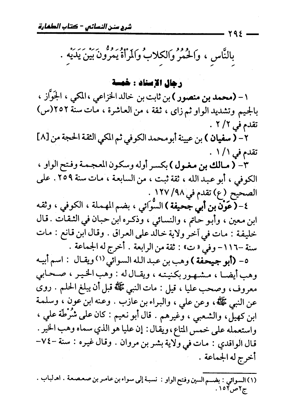 4 - (عَوْن بن أبي جحيفة) السُّوَائي، بضم المهملة، الكوفي، وثقه ابن معين، وأبو حاتم، والنسائي، وذكره ابن حبان في الثقات. قال خليفة: مات في آخر ولاية خالد على العراق. وقال ابن قانع: مات سنة -116 - وفي "ت": ثقة من الرابعة. أخرج له الجماعة.