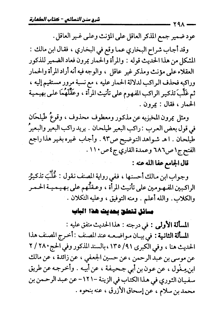 مسائل تتعلق بحديث هذا الباب
