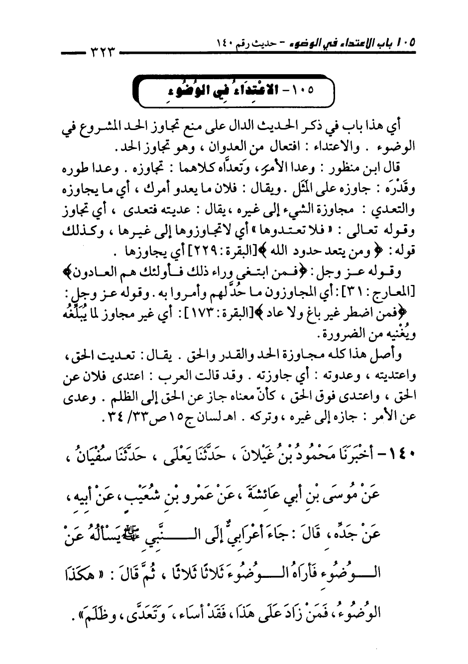 105 - الاعْتِدَاءُ فِي الوُضُوءِ