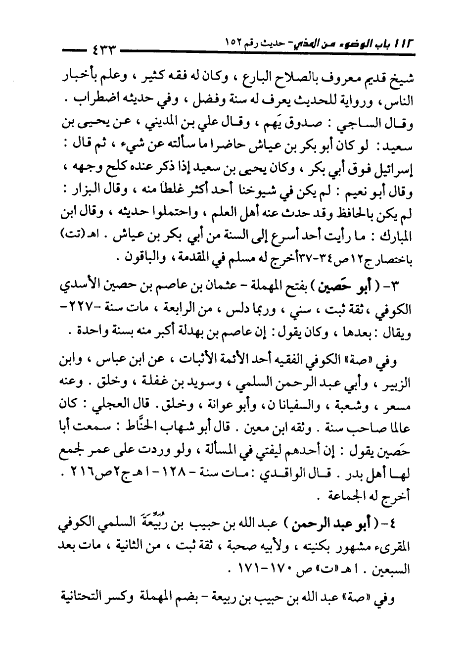3 - (أبو حَصين) بفتح المهملة- عثمان بن عاصم بن حصين الأسدي الكوفي، ثقة ثبت، سني، وربما دلس، من الرابعة، مات سنة -227 - ويقال: بعدها، وكان يقول: إن عاصم بن بهدلة أكبر منه بسنة واحدة.