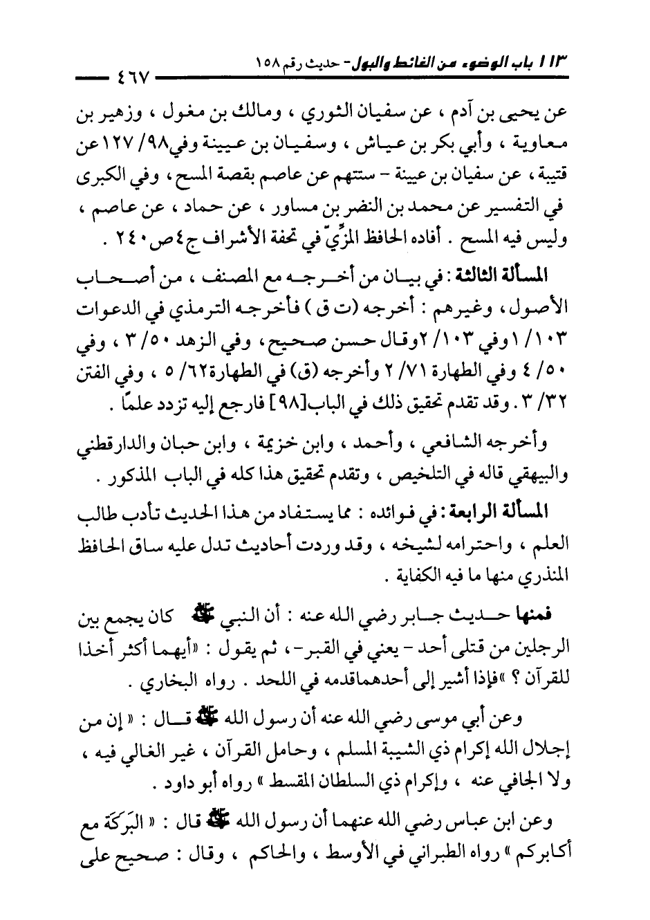المسألة الثالثة: في بيان من أخرجه مع المصنف، من أصحاب الأصول، وغيرهم: أخرجه (ت ق) فأخرجه الترمذي في الدعوات 103/ أو في 103/ 2 وقال حسن صحيح، وفي الزهد 50/ 3، وفي 50/ 4 وفي الطهارة 71/ 2 وأخرجه (ق) في الطهارة 62/ 5، وفي الفتن 32/ 3. وقد تقدم تحقيق ذلك في الباب [98]، فارجع إليه تزدد علمًا.