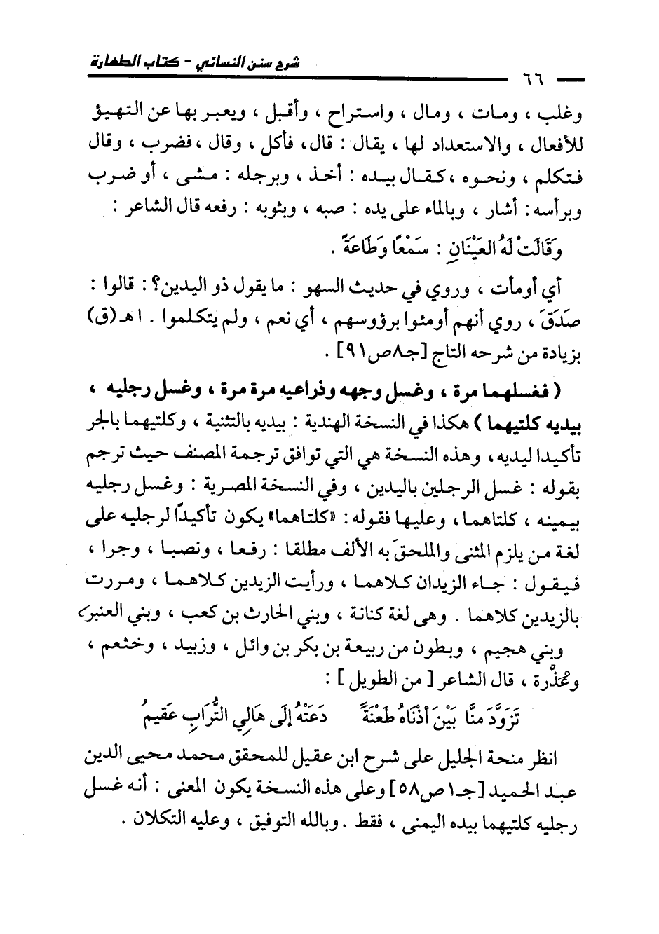 انظر منحة الجليل على شرح ابن عقيل للمحقق محمَّد محيى الدين عبد الحميد [جـ 1 ص 58] وعلى هذه النسخة يكون المعنى: أنه غسل رجليه كلتيهما بيده اليمنى، فقط. وبالله التوفيق، وعليه التكلان.