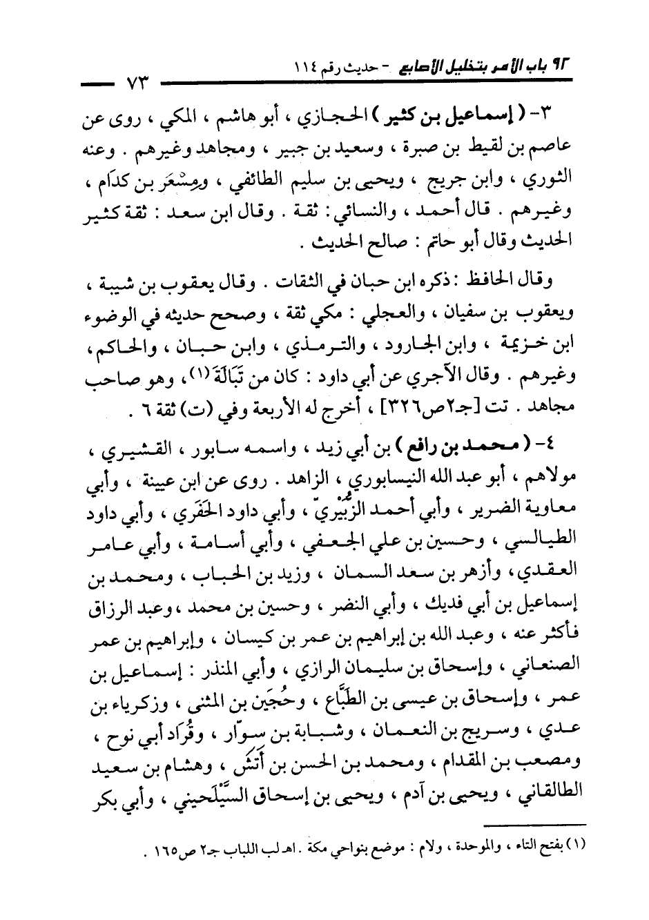 3 - (إسماعيل بن كثير) الحجازي، أبو هاشم، المكي، روى عن عاصم بن لقيط بن صبرة، وسعيد بن جبير، ومجاهد وغيرهم. وعنه الثوري، وابن جريج، ويحيى بن سليم الطائفي، ومِسْعَرَ بن كدَام، وغيرهم. قال أحمد، والنسائي: ثقة. وقال ابن سعد: ثقة كثير الحديث وقال أبو حاتم: صالح الحديث.
