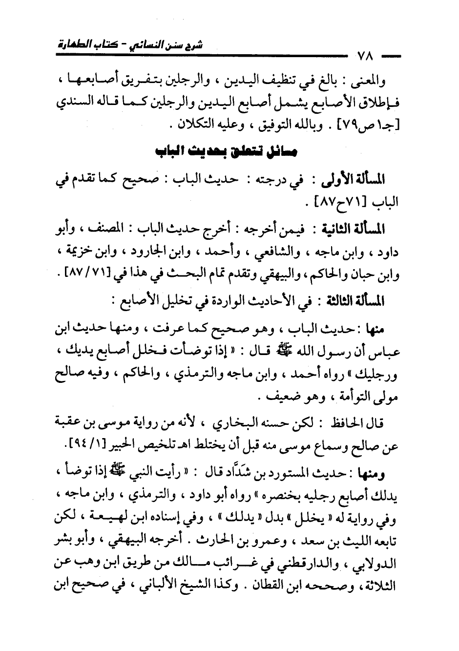 المسألة الثالثة: في الأحاديث الواردة في تخليل الأصابع: