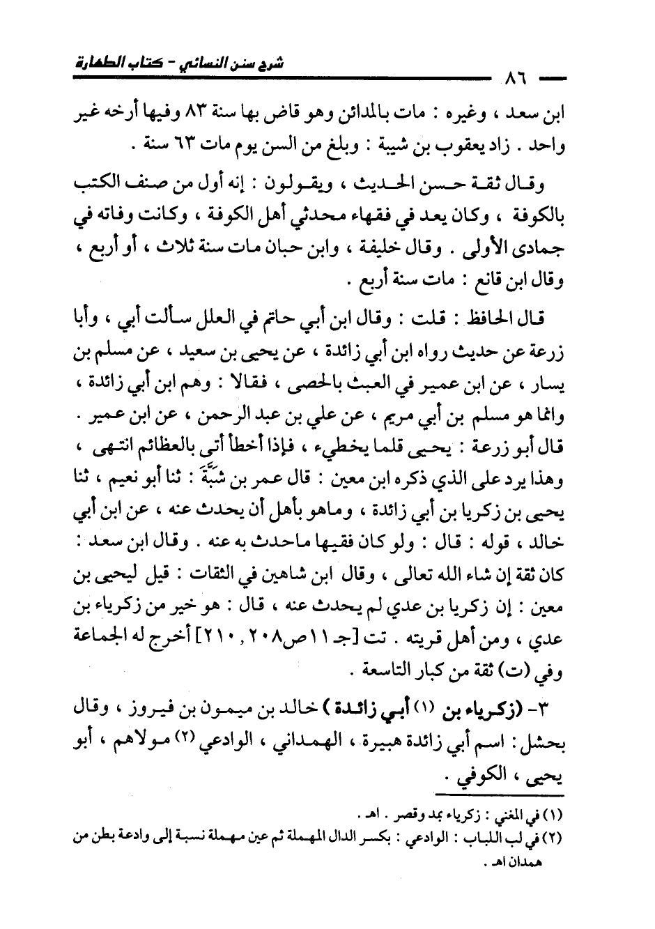 3 - (زكرياء بن (¬1) أبي زائدة) خالد بن ميمون بن فيروز، وقال بحشل: اسم أبي زائدة هبيرة، الهمداني، الوادعي (¬2) مولاهم، أبو يحيى، الكوفي.
