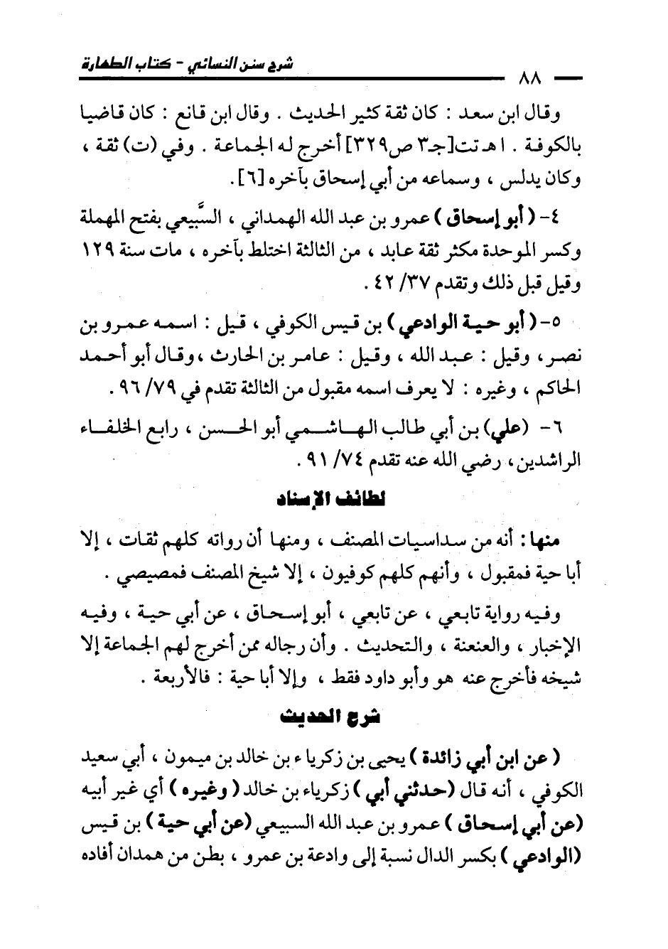 4 - (أبو اسحاق) عمرو بن عبد الله الهمداني، السَّبيعي بفتح المهملة وكسر الموحدة مكثر ثقة عابد، من الثالثة اختلط بآخره، مات سنة 129 وقيل قبل ذلك وتقدم 37/ 42.