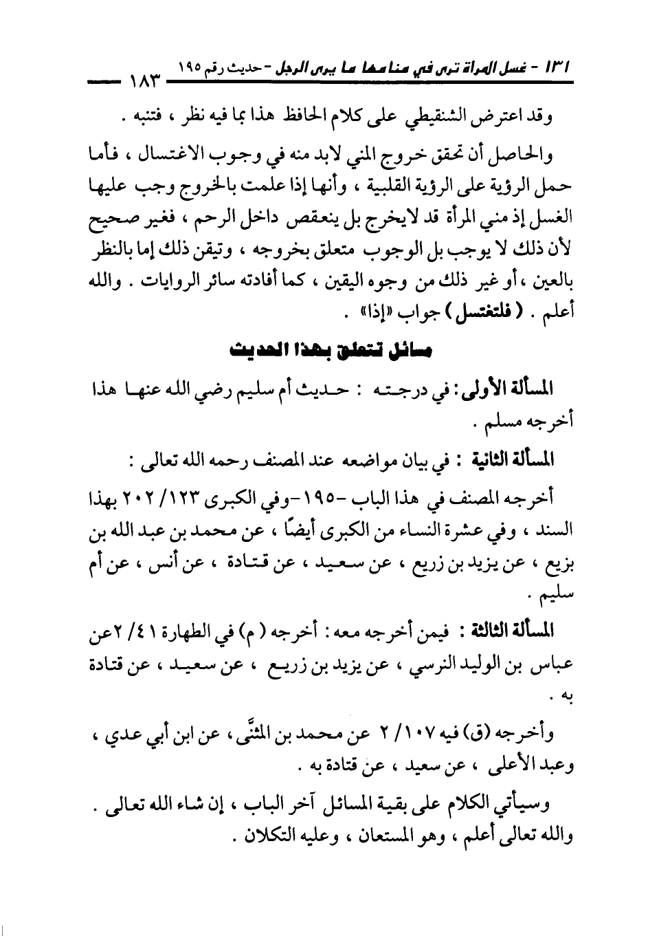 مسائل تتعلق بهذا الحديث