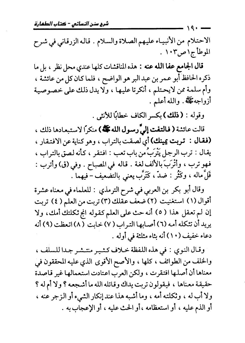 قال الجامع عفا الله عنه: هذه المناقشات كلها عندي محل نظر، بل ما ذكره الحافظ أبو عمر بن عبد البر هو الواضح، فلما كان كل من عائشة، وأم سلمة ممن لا يحتلم، أنكرتا عليها، ولا يدل ذلك على خصوصية أزوا جه - صلى الله عليه وسلم -. والله أعلم.