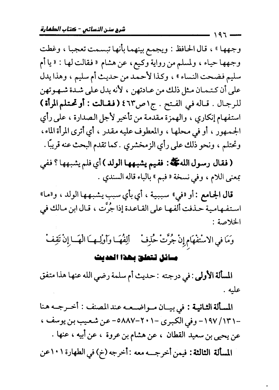 المسألة الثانية: في بيان مواضعه عند المصنف: أخرجه هنا -131/ 197 - وفي الكبرى-201 - 5887 - عن شعيب بن يوسف، عن يحيى بن سعيد القطان، عن هشام بن عروة، عن أبيه، عنها.