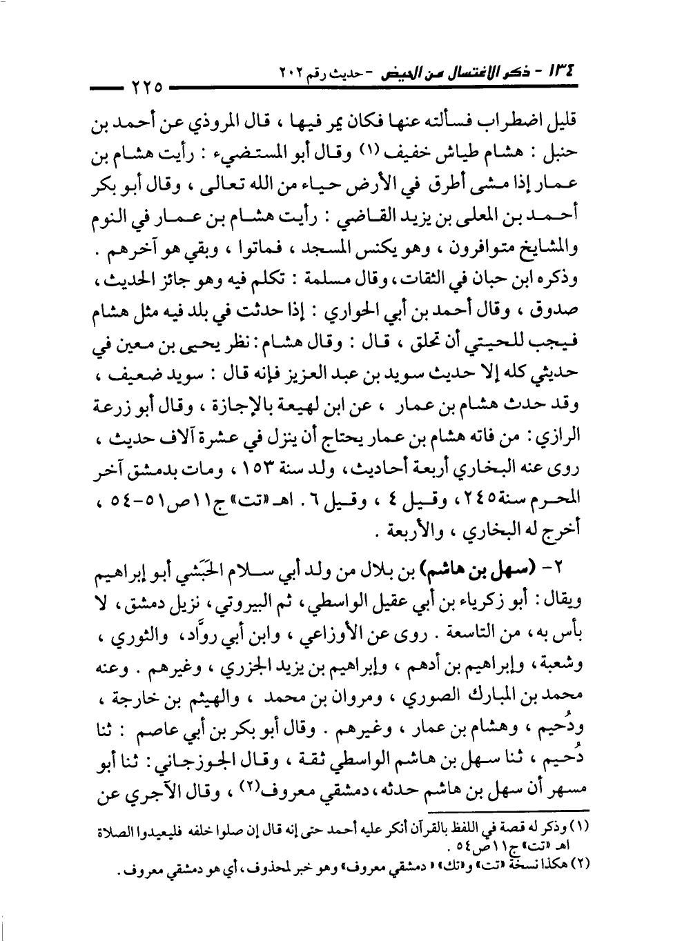 2 - (سهل بن هاشم) بن بلال من ولد أبي سلام الحَبَشي أبو إبراهيم ويقال: أبو زكرياء بن أبي عقيل الواسطي، ثم البيروتي، نزيل دمشق، لا بأس به، من التاسعة. روى عن الأوزاعي، وابن أبي روَّاد، والثوري، وشعبة، وإبراهيم بن أدهم، وإبراهيم بن يزيد الجزري، وغيرهم. وعنه محمَّد بن المبارك الصوري، ومروان بن محمَّد، والهيثم بن خارجة، ودُحيم، وهشام بن عمار، وغيرهم. وقال أبو بكر بن أبي عاصم: ثنا دُحيم، ثنا سهل بن هاشم الواسطي ثقة، وقال الجوزجاني: ثنا أبو مسهر أن سهل بن هاشم حدثه، دمشقي معروف (¬2)، وقال الآجري عن