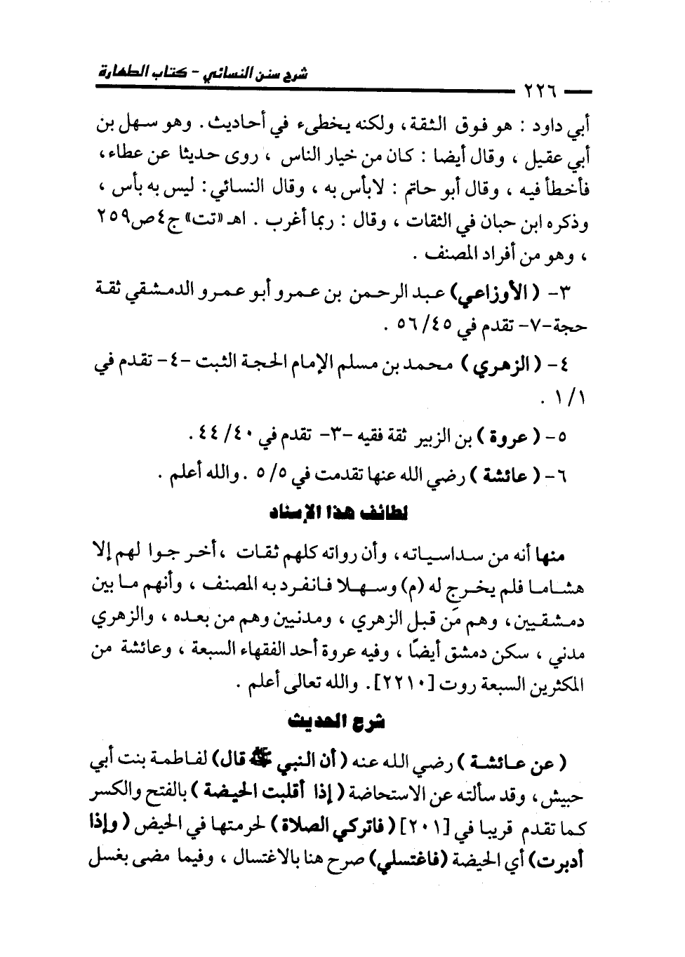 منها أنه من سداسياته، وأن رواته كلهم ثقات، أخرجوا لهم إلا هشاما فلم يخرج له (م) وسهلا فانفرد به المصنف، وأنهم ما بين دمشقيين، وهم مَن قبل الزهري، ومدنيين وهم من بعده، والزهري مدني، سكن دمشق أيضًا، وفيه عروة أحد الفقهاء السبعة، وعائشة من المكثرين السبعة روت [2210]. والله تعالى أعلم.