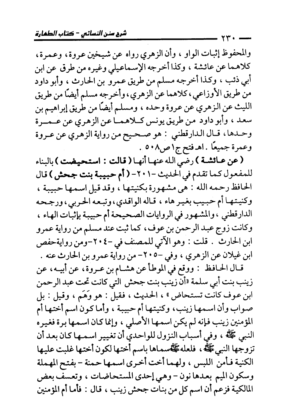 (عن عائشة) رضي الله عنها أنها (قالت: استحيضت) بالبناء للمفعول كما تقدم في الحديث -201 - (أم حبيبة بنت جحش) قال الحافظ رحمه الله: هى مشهورة بكنيتها، وقد قيل اسمها حبيبة، وكنيتها أم حبيب بغير هاء، قاله الواقدي، وتبعه الحربي، ورجحه الدارقطني، والمشهور في الروايات الصحيحة أم حبيبة بإثبات الهاء، وكانت زوج عبد الرحمن بن عوف، كما ثبت عند مسلم من رواية عمرو ابن الحارث. قلت: وهو الآتي للمصنف في -204 - ومن رواية حفص ابن غيلان عن الزهري، وفي -205 - من رواية عمرو بن الحارث عنه.