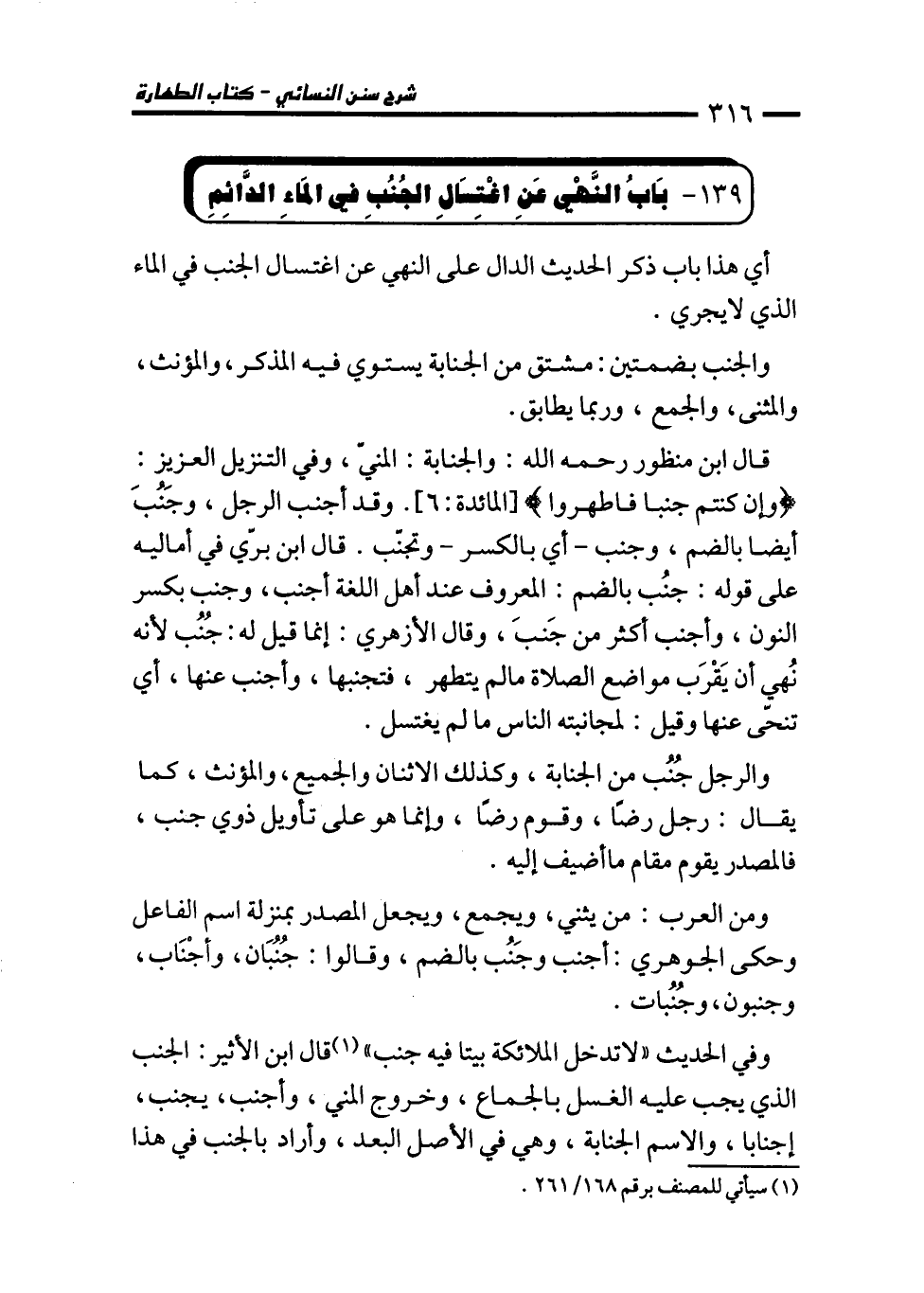 139 - بَابُ النَّهْي عَنِ اغْتِساَلِ الجُنُبِ فِي المَاءِ الدَّائِمِ