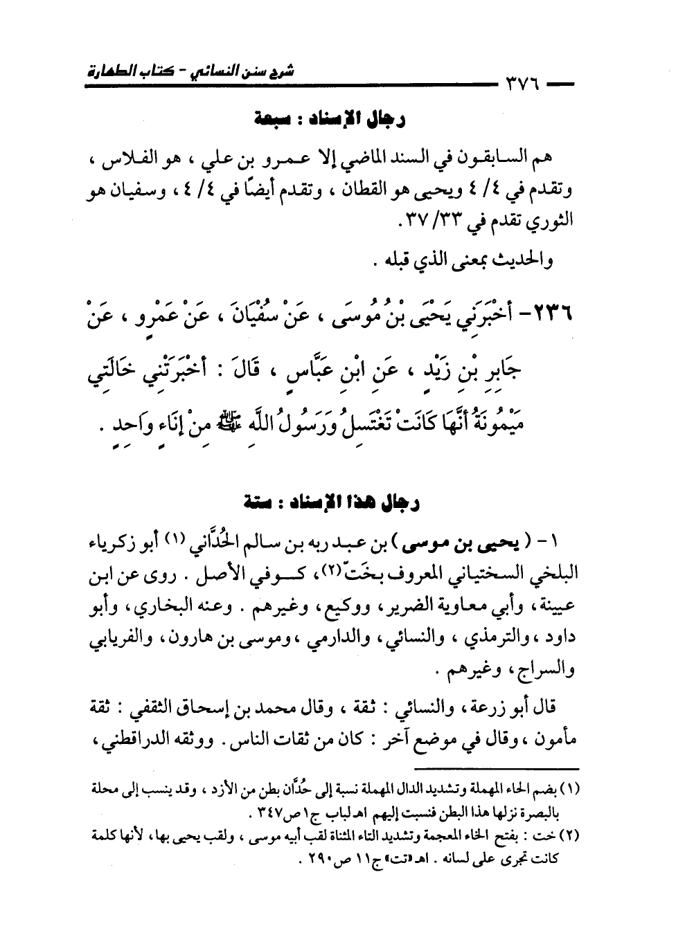 (¬2) خت: بفتح الخاء المعجمة وتشديد التاء المثناة لقب أبيه موسى، ولقب يحيى بها؛ لأنها كلمة كانت تجرى على لسانه. اهـ "تت" ج 11 ص 290.