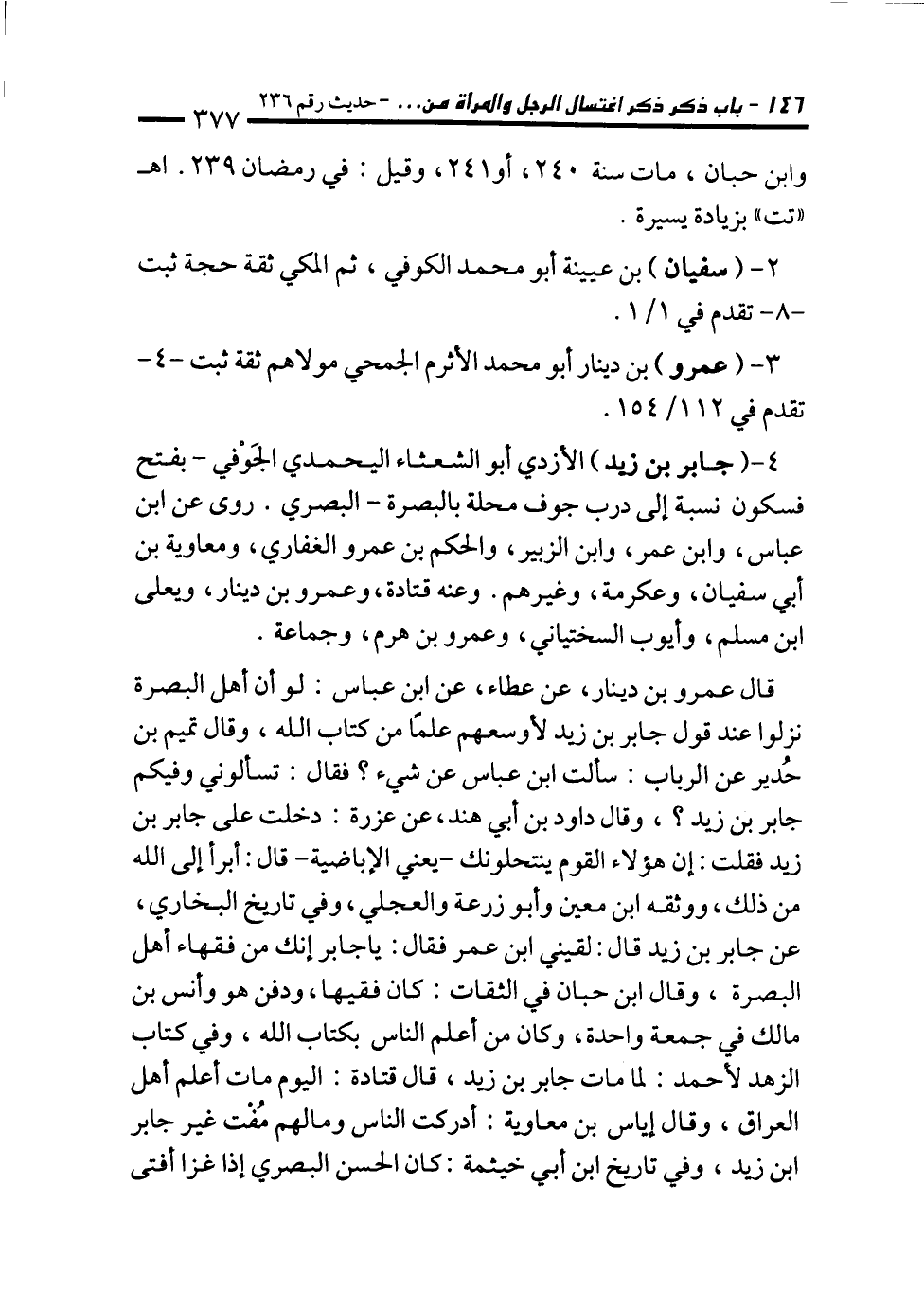 4 - (جابر بن زيد) الأزدي أبو الشعثاء اليحمدي الجَوْفي -بفتح فسكون نسبة إلى درب جوف محلة بالبصرة- البصري. روى عن ابن عباس، وابن عمر، وابن الزبير، والحكم بن عمرو الغفاري، ومعاوية بن أبي سفيان، وعكرمة، وغيرهم. وعنه قتادة، وعمرو بن دينار، ويعلى ابن مسلم، وأيوب السختياني، وعمرو بن هرم، وجماعة.