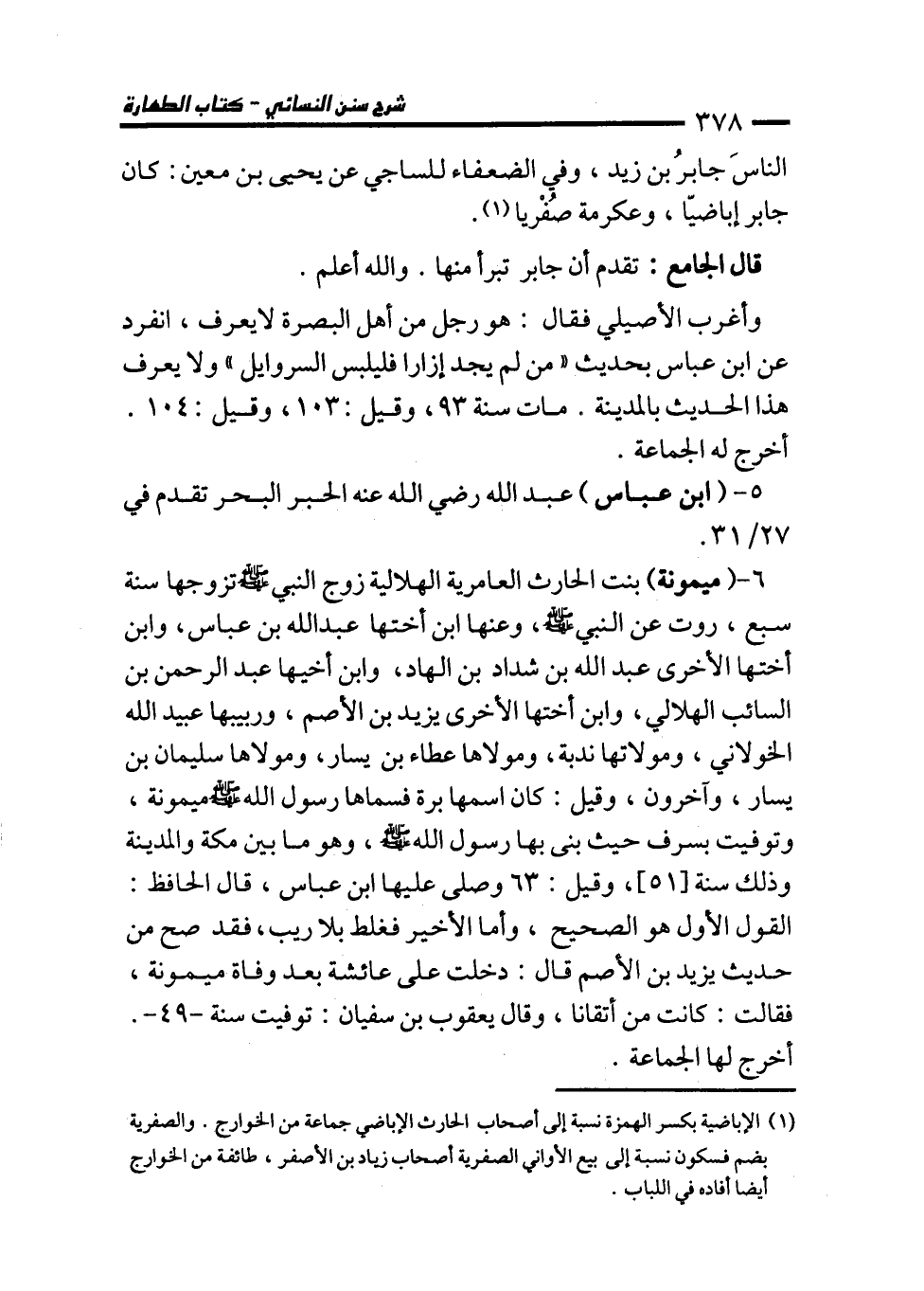 (¬1) الإباضية بكسر الهمزة نسبة إلى أصحاب الحارث الإباضي جماعة من الخوارج. والصفرية بضم فسكون نسبة إلى بيع الأواني الصفرية أصحاب زياد بن الأصفر، طائفة من الخوارج أيضا أفاده في اللباب.