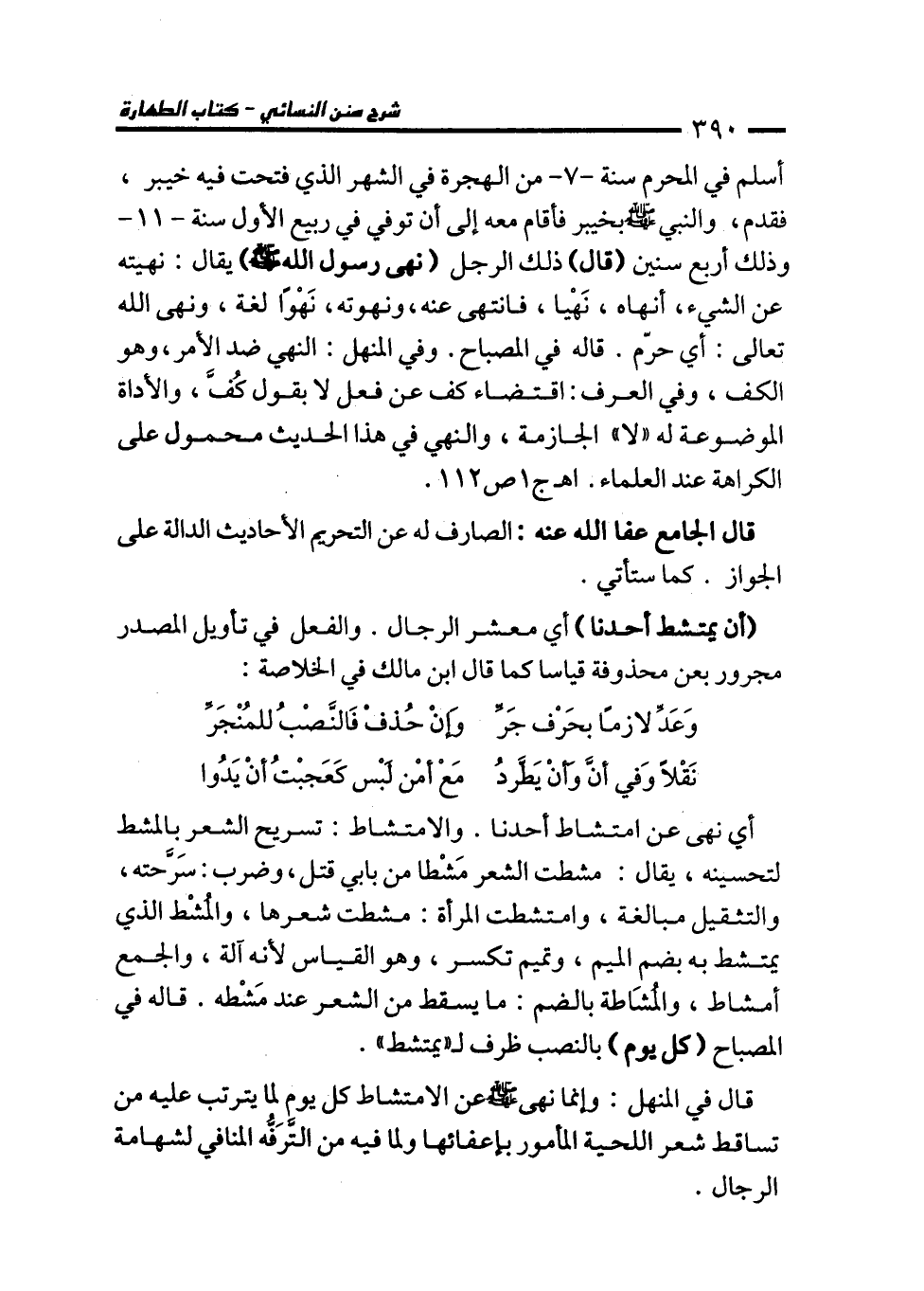(أن يمتشط أحدنا) أي معشر الرجال. والفعل في تأويل المصدر مجرور بعن محذوفة قياسا كما قال ابن مالك في الخلاصة: