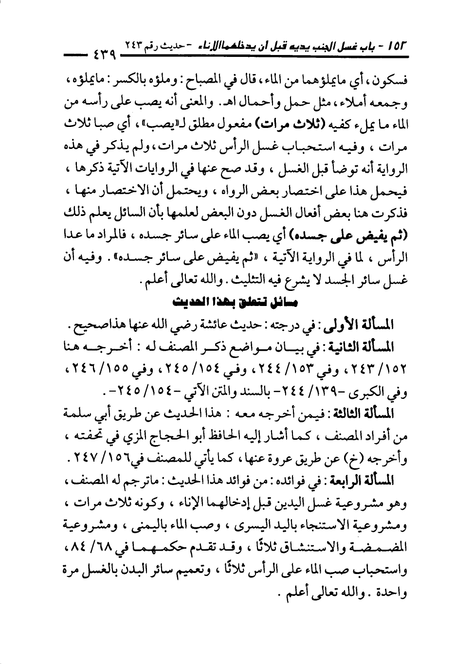 المسألة الثانية: في بيان مواضع ذكر المصنف له: أخرجه هنا 152/ 243، وفي 153/ 244، وفي 154/ 245، وفي 155/ 246، وفي الكبرى -139/ 244 - بالسند والمتن الآتي -154/ 245 - .