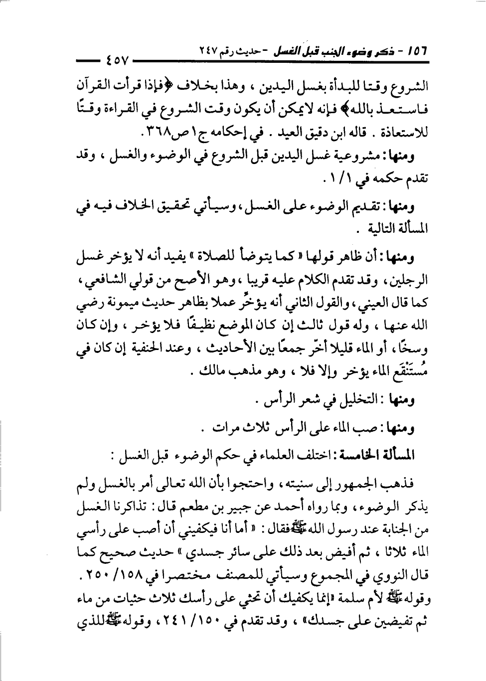 المسألة الخامسة: اختلف العلماء في حكم الوضوء قبل الغسل:
