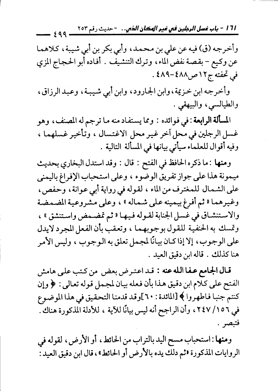 قال الجامع عفا الله عنه: قد اعترض بعض من كتب على هامش الفتح على كلام ابن دقيق هذا بأن فعله بيان لمجمل قوله تعالى: {وَإِنْ كُنْتُمْ جُنُبًا فَاطَّهَّرُوا} [المائدة: 60] وقد قدمنا التحقيق في هذا الموضوع في 156/ 247، وأن الراجح أنه ليس بيانًا للآية، للأدلة المذكورة هناك. فتبصر.