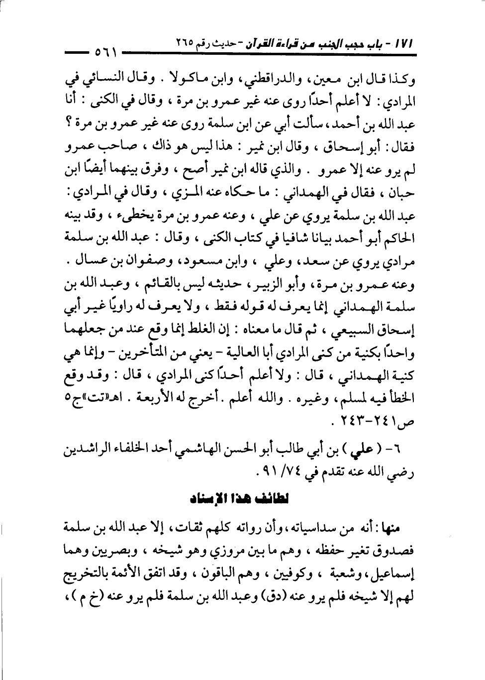 6 - (علي) بن أبي طالب أبو الحسن الهاشمي أحد الخلفاء الراشدين رضي الله عنه تقدم في 74/ 91.