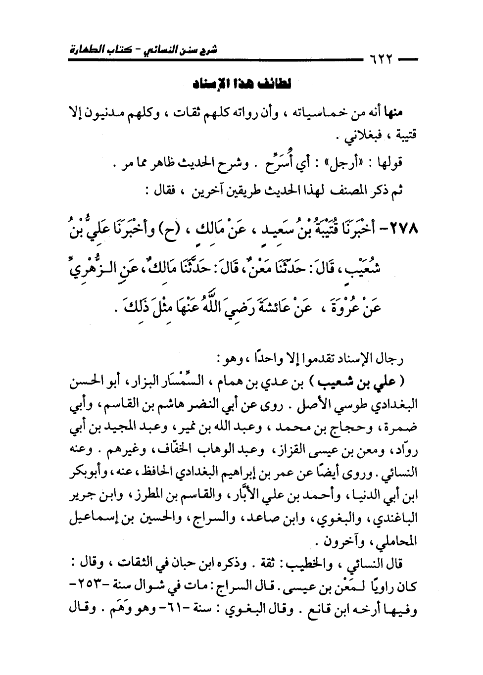 278 - أَخْبَرَنَا قُتَيْبَةُ بْنُ سَعِيدٍ، عَنْ مَالِكٍ، (ح) وَأَخْبَرَنَا عَلِيُّ بْنُ شُعَيْبٍ، قَالَ: حَدَّثَنَا مَعْنٌ، قَالَ: حَدَّثَنَا مَالِكٌ، عَنِ الزُّهْرِيِّ، عَنْ عُرْوَةَ، عَنْ عَائِشَةَ رَضِيَ اللهُ عَنْهَا مِثْلَ ذَلِكَ.