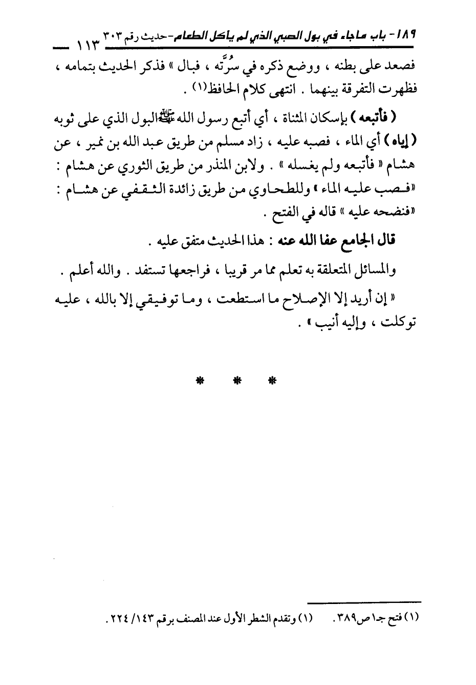 (¬1) فتح جـ1 ص 389، وتقدم الشطر الأول عند المصنف برقم 143/ 224.