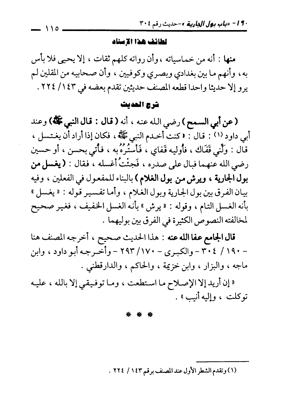 قال الجامع عفا الله عنه: هذا الحديث صحيح، أخرجه المصنف هنا -190/ 304 - والكبرى -170/ 293 - وأخرجه أبو داود، وابن ماجه، والبزار، وابن خزيمة، والحاكم، والدارقطني.
