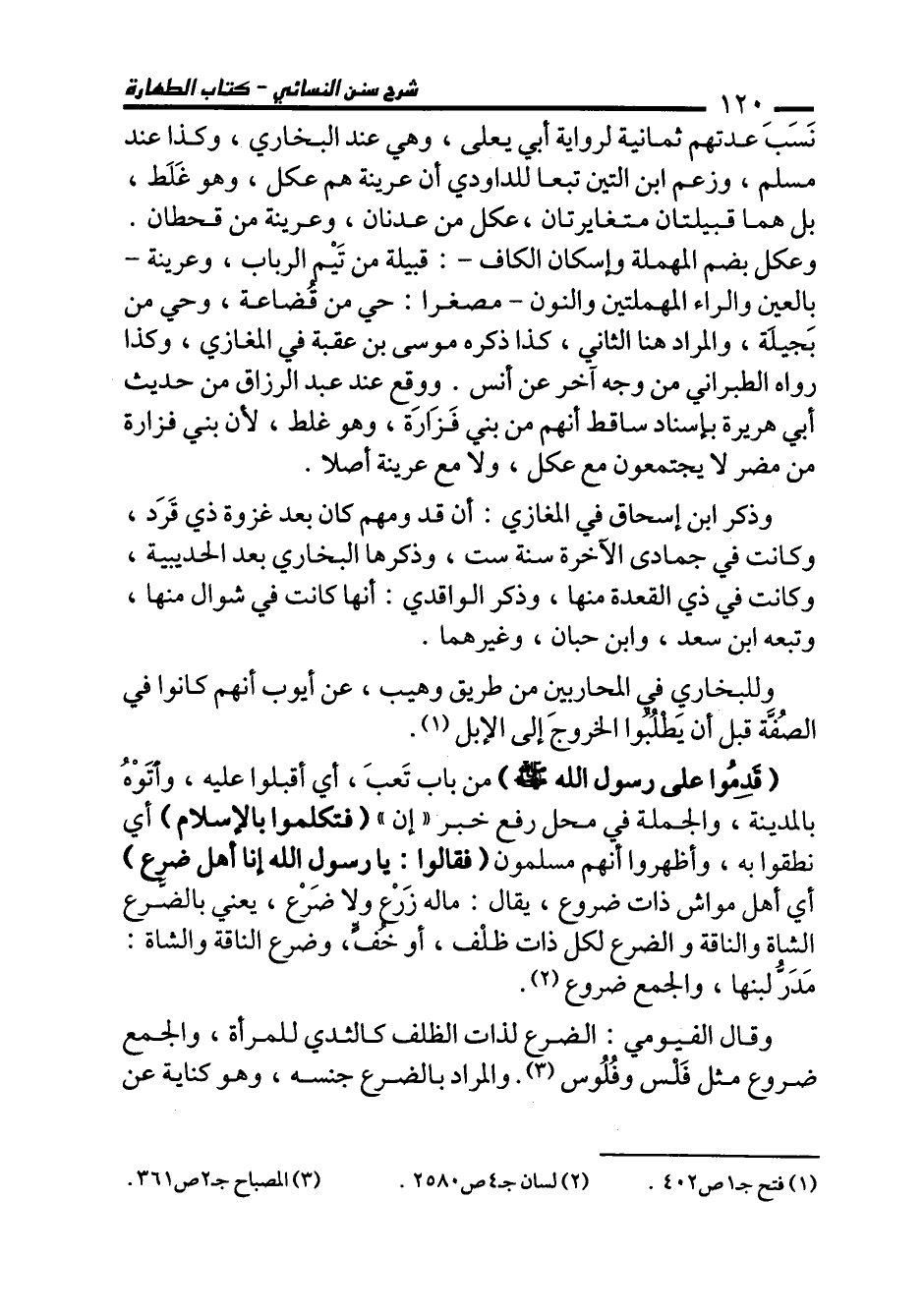 (قَدِمُوا على رسول الله - صلى الله عليه وسلم -) من باب تَعبَ، أي أقبلوا عليه، وأتَوْهُ بالمدينة، والجملة في محل رفع خبر "إن" (فتكلموا بالإسلام) أي نطقوا به، وأظهروا أنهم مسلمون (فقالوا: يا رسول الله إنا أهل ضرع) أي أهل مواش ذات ضروع، يقال: ماله زَرعْ ولا ضَرعْ، يعني بالضَّرع الشاة والناقة والضرع لكل ذات ظلْف، أو خُفٍّ، وضرع الناقة والشاة: مَدَرُّ لبنها، والجمع ضروع (¬2).