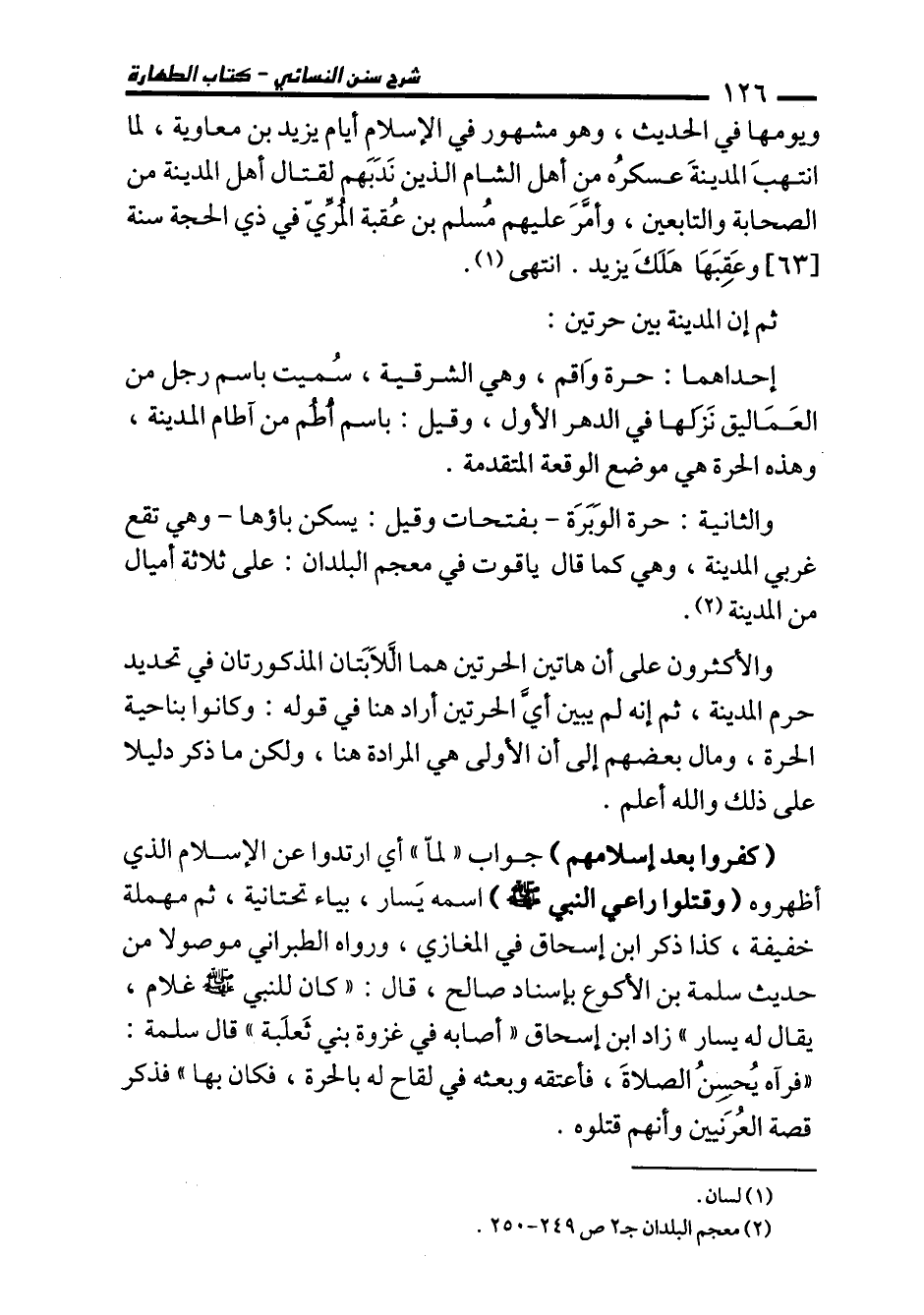 والأكثرون على أن هاتين الحرتين هما الَّلاَبَتان المذكورتان في تحديد حرم المدينة، ثم إنه لم يبين أيَّ الحرتين أراد هنا في قوله: وكانوا بناحية الحرة، ومال بعضهم إلى أن الأولى هي المرادة هنا, ولكن ما ذكر دليلا على ذلك والله أعلم.